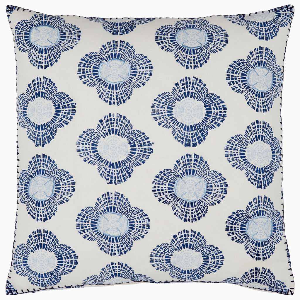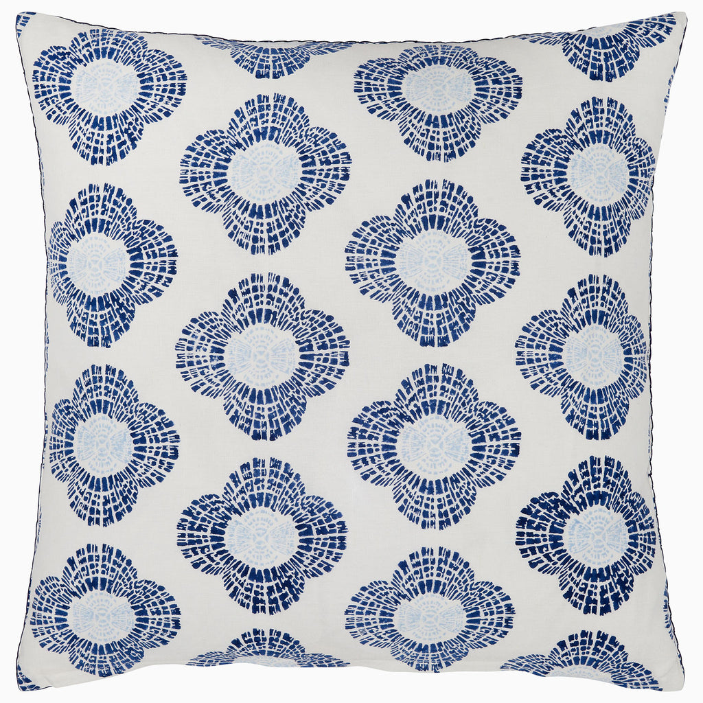 A bold repeat of stylized blossoms, each formed from radiating indigo lines that create a striking mosaic effect.Pillow insert sold separately.
