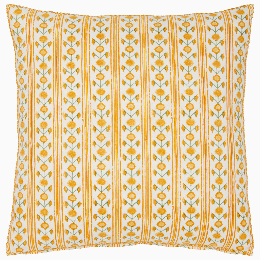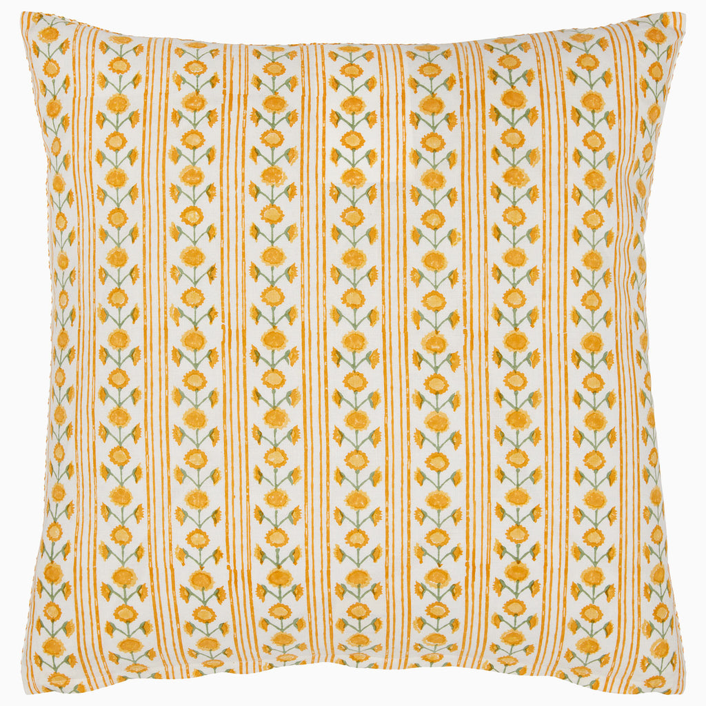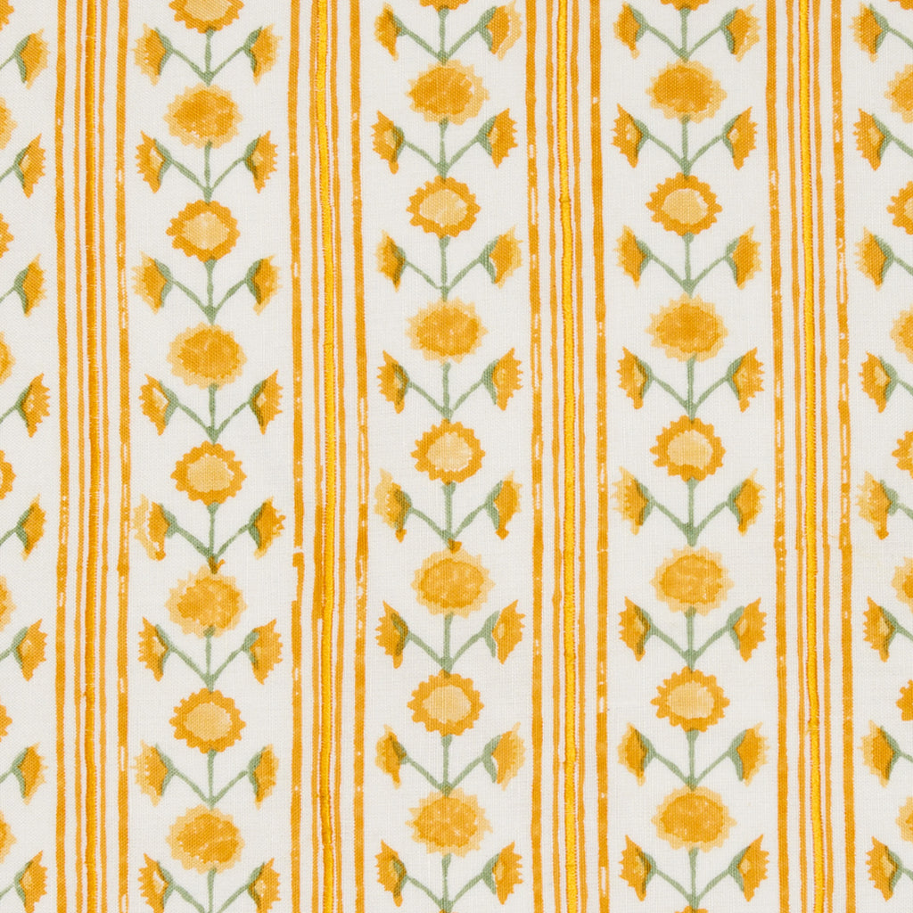 Alternating stripes of tiny floral blooms, block printed in bright shades of azalea and marigold.
