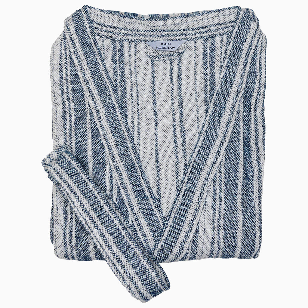 A cozy, woven robe with relaxed stripes and an easy drape.