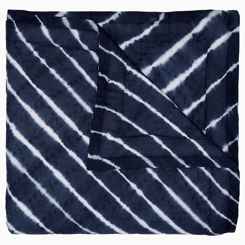Inspired by the traditional indigo dying traditions of Southern India called 'Leheriya', this quilt is tie dyed by hand on pure cotton voile.